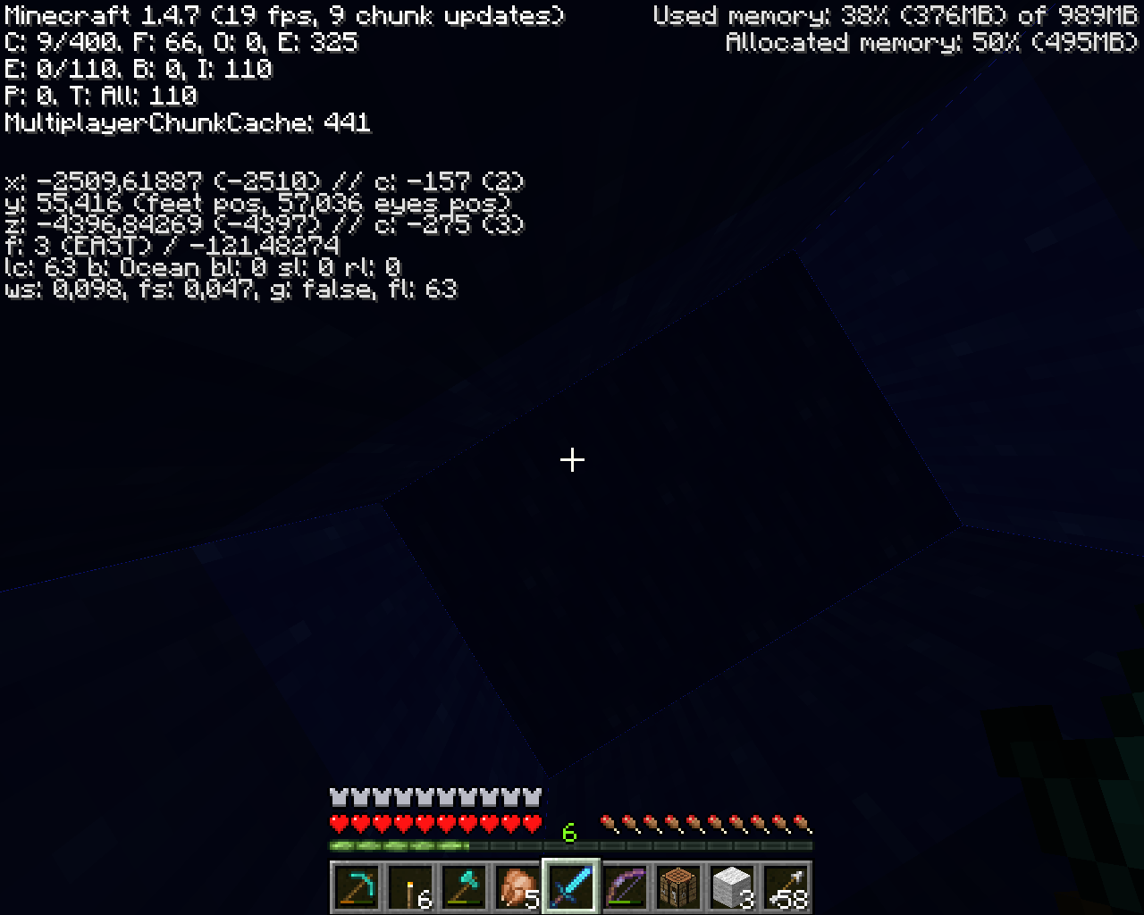 Voila la fin du monde. Ou bien c'est juste un bug de Biomes mais personne ne saura jamais. Sauf si il va puisqu'il y a les coordonnés. (Bug de biome Bonjour)