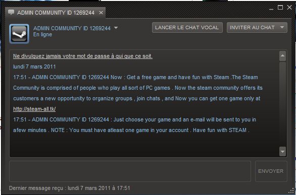 Bref, il vous renvoie sur un site qui est sois-disant le site Steam community pour que vous vous connectiez et... vous connaissez la suite...